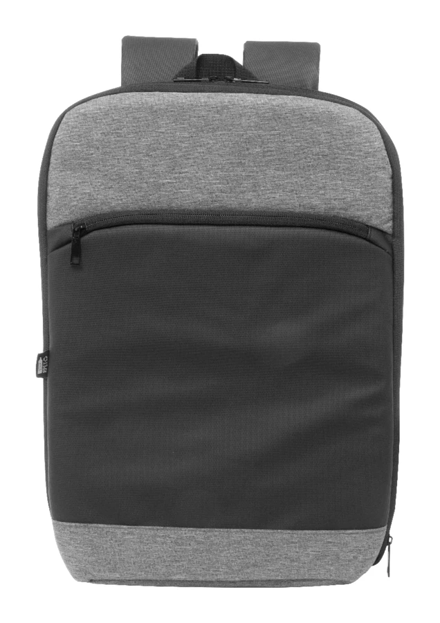 Rozszerzalny plecak RPET z główną komorą na suwak, kieszenią z przodu na suwak, wyściełaną przegrodą na laptopa (15") i przednią stroną pokrytą PU. Z paskiem na wózek, wyściełanym tyłem i paskami na ramiona. Poliester RPET 600D, z charakterystyczną metką RPET.
