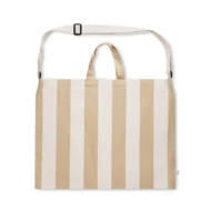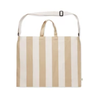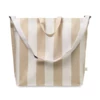 Bardzo duża torba plażowa w paski wykonana z bawełny z recyklingu (80%) i poliestru z recyklingu (20%) o gramaturze 280 gr/m² z wewnętrzną kieszenią. Krótkie uchwyty i jeden duży regulowany pasek na ramię.