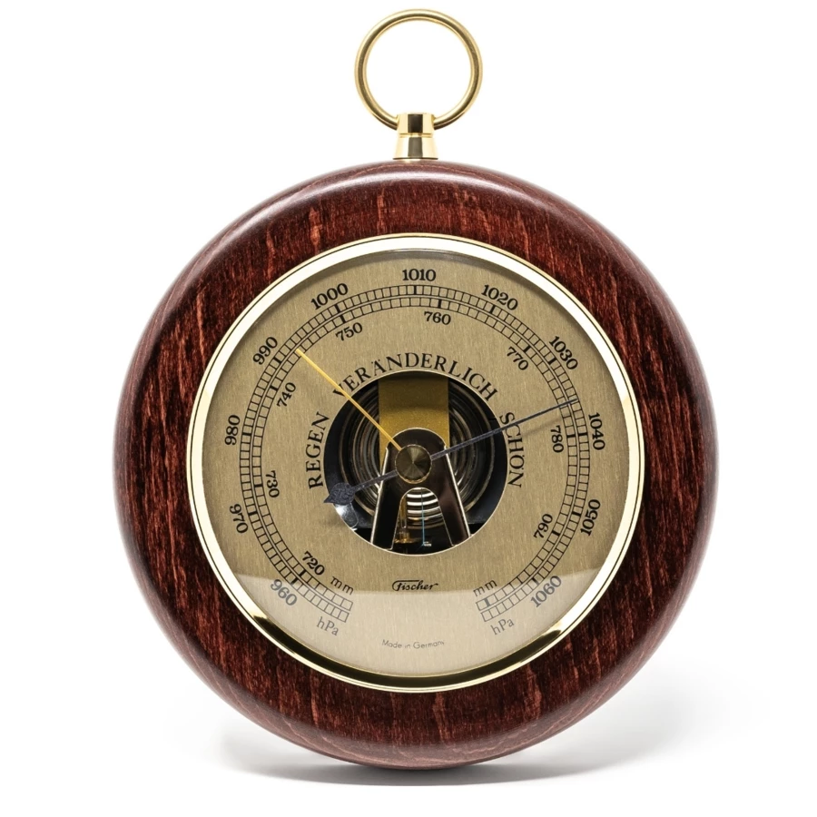 Piękny barometr firmy Fischer - kod 1366R-22 z widocznym mechanizmem