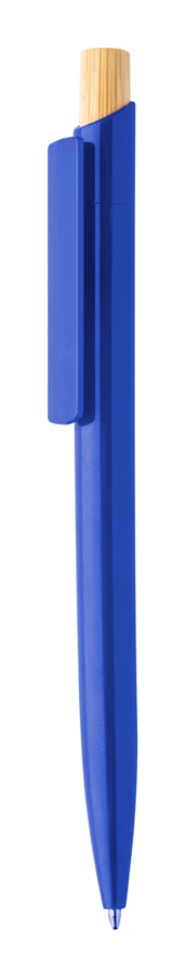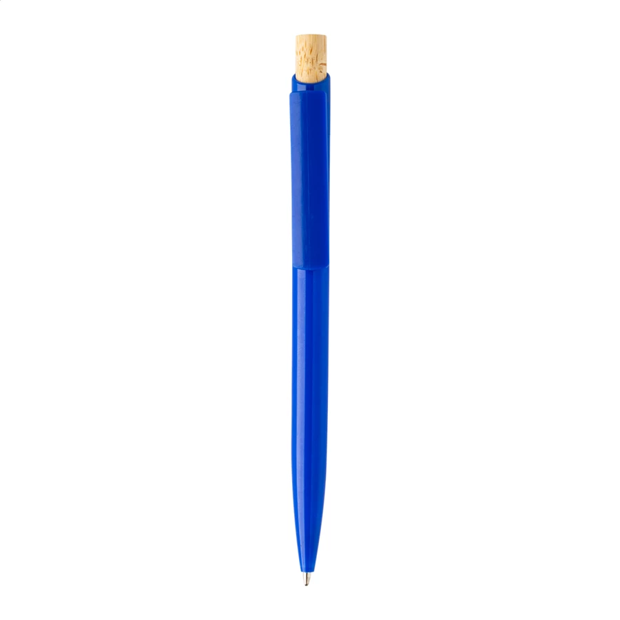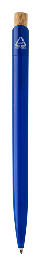 Długopis z recyklingowanego plastiku ABS z bambusowym przyciskiem. Z niebieskim wkładem.