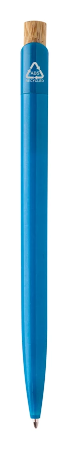 Długopis z recyklingowanego plastiku ABS z bambusowym przyciskiem. Z niebieskim wkładem.