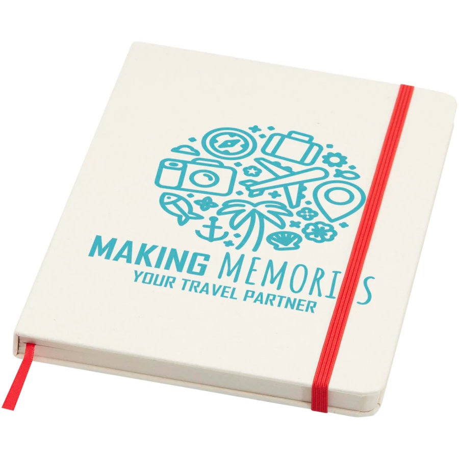 Notatnik Bass A5 w twardej okładce zawiera 80 papierowych kartek w linie o gramaturze 80 g/m2 i jest wykonany z przetworzonych kartonów na mleko.