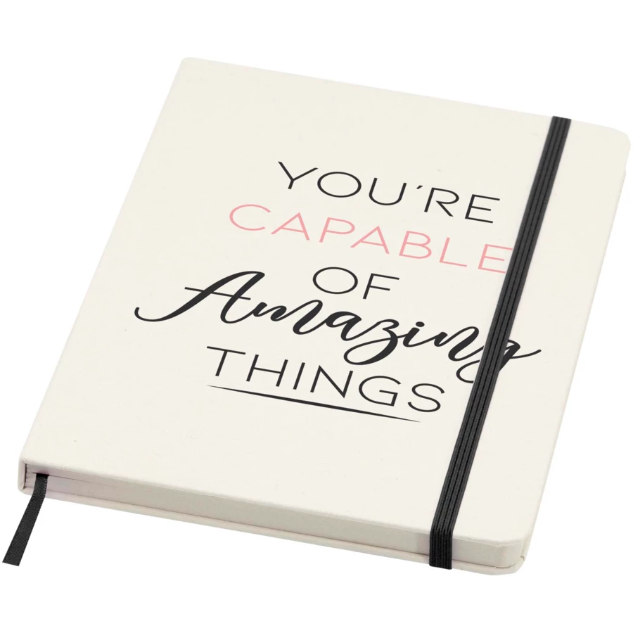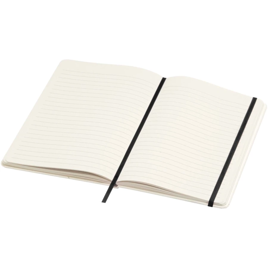 Notatnik Bass A5 w twardej okładce zawiera 80 papierowych kartek w linie o gramaturze 80 g/m2 i jest wykonany z przetworzonych kartonów na mleko.