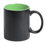 Czarny kubek ceramiczny z kolorowym środkiem. Pokryty specjalną powłoką do grawerowania, wygrawerowane logo będzie miało ten sam kolor co środek. W pudełku. Poj. 350 ml.