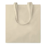 Bawełniana torba na zakupy z długimi uchwytami 140 gr / m². Ten produkt posiada certyfikat OEKO-TEX® STANDARD 100.