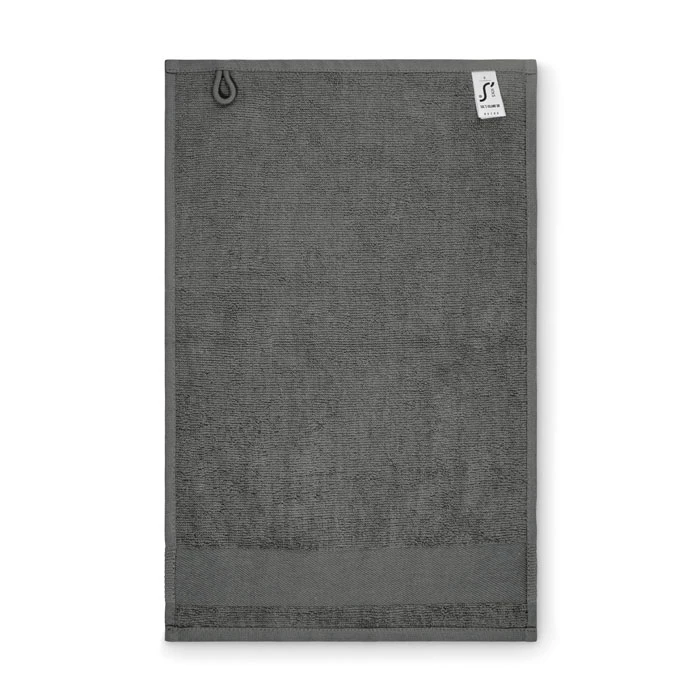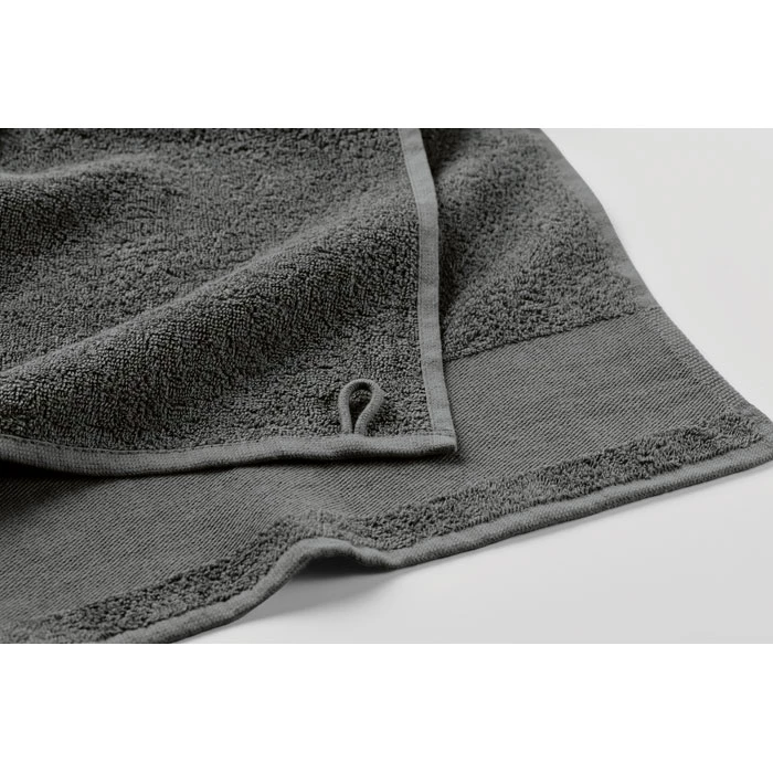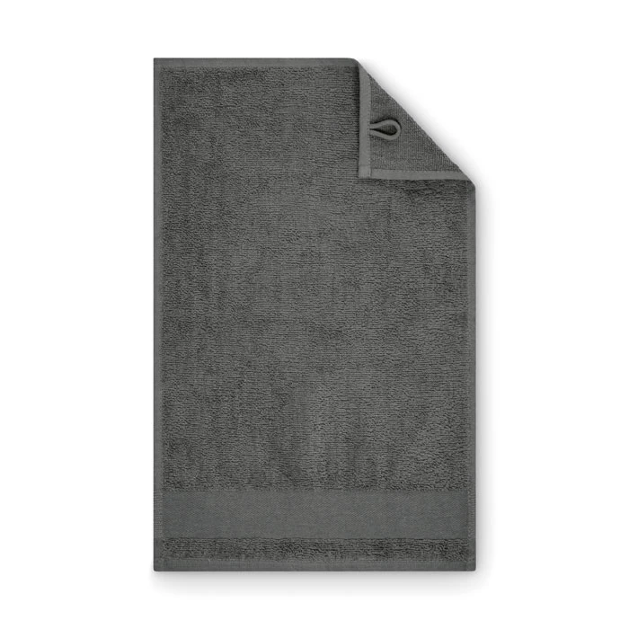 Ręcznik dla gości wykonany w 100% z bawełny o gramaturze 380 gr/m² z bawełnianą pętelką na wieszak. Miękka i chłonna konstrukcja.