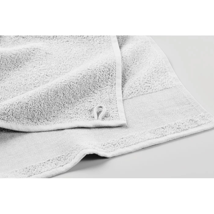 Ręcznik kąpielowy wykonany w 100% z bawełny o gramaturze 380 gr/m² z bawełnianą pętelką do zawieszenia. Miękka i chłonna konstrukcja.