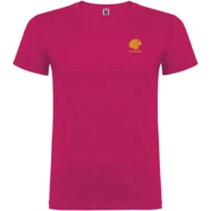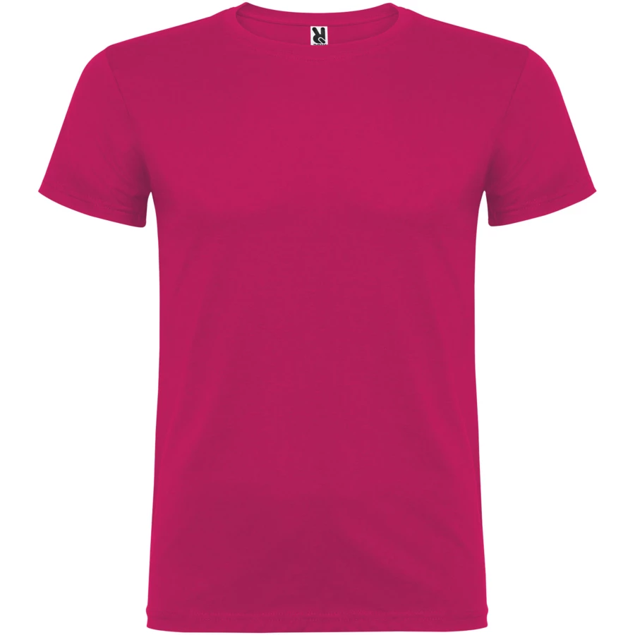 T-shirt z krótkim rękawem ze szwami bocznymi. Podwójna tkanina z dodatkiem elastanu przy kołnierzu. Wzmocnione, kryte szwy na karczku. Brak szwów bocznych w wersji dla dorosłych. Usuwalna metka.