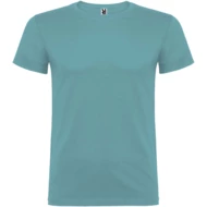 T-shirt z krótkim rękawem ze szwami bocznymi. Podwójna tkanina z dodatkiem elastanu przy kołnierzu. Wzmocnione, kryte szwy na karczku. Brak szwów bocznych w wersji dla dorosłych. Usuwalna metka.