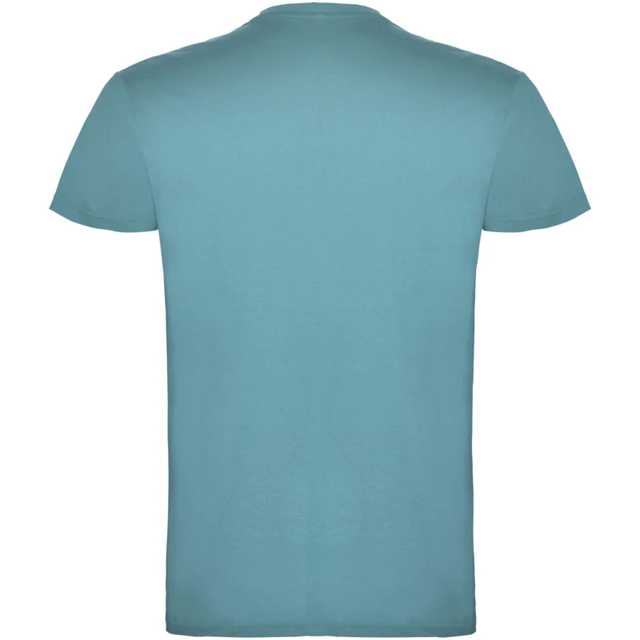 T-shirt z krótkim rękawem. Podwójna tkanina z dodatkiem elastanu przy kołnierzu. Wzmocnione, kryte szwy na karczku. Brak szwów bocznych w wersji dla dorosłych. Usuwalna metka.