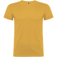 T-shirt z krótkim rękawem. Podwójna tkanina z dodatkiem elastanu przy kołnierzu. Wzmocnione, kryte szwy na karczku. Brak szwów bocznych w wersji dla dorosłych. Usuwalna metka.