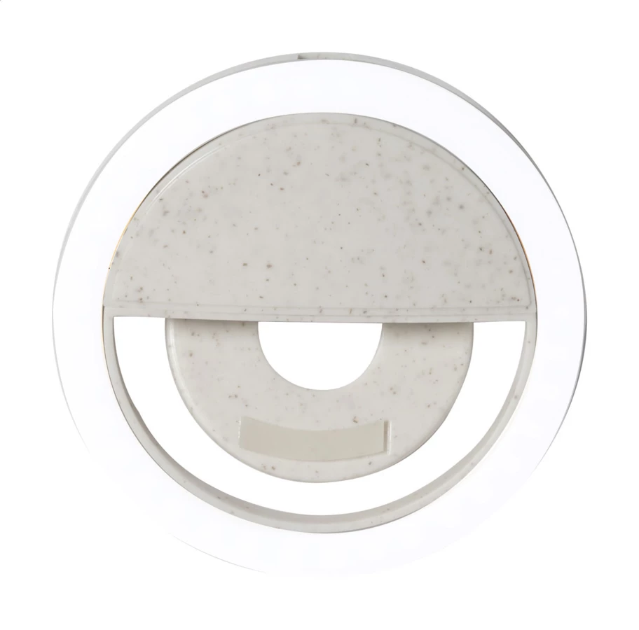 Lampka pierścieniowa do selfie z plastiku ze słomy pszenicznej z 36 diodami LED do telefonów komórkowych. Z 3 regulowanymi poziomami jasności i wbudowanym akumulatorem. W zestawie kabel do ładowarki USB.