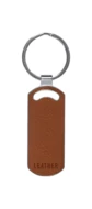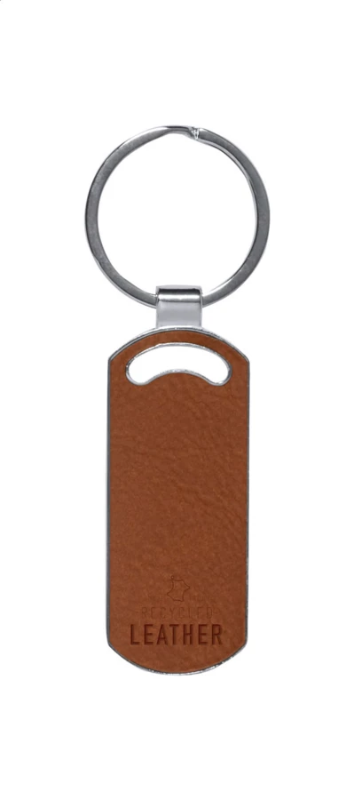 Metalowy brelok do kluczy pokryty skórą z recyklingu.