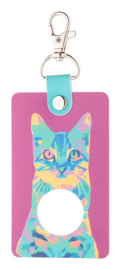 Własnego projektu, plastikowy uchwyt na butelki PET z metalowym karabińczykiem i full kolorowym nadrukiem. Cena zawiera nadruk UV LED. Min. ilość: 100szt.