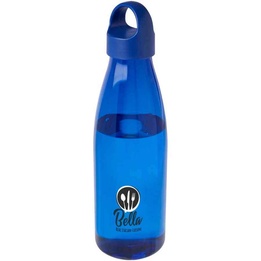 Butelka na wodę wykonana z tworzywa RPET z certyfikatem RCS, wyposażona w wygodny uchwyt do przenoszenia zintegrowany z zakrętką. Certyfikat EFSA (Europejski Urząd ds. Bezpieczeństwa Żywności). Pojemność: 800 ml. Wolne od BPA.