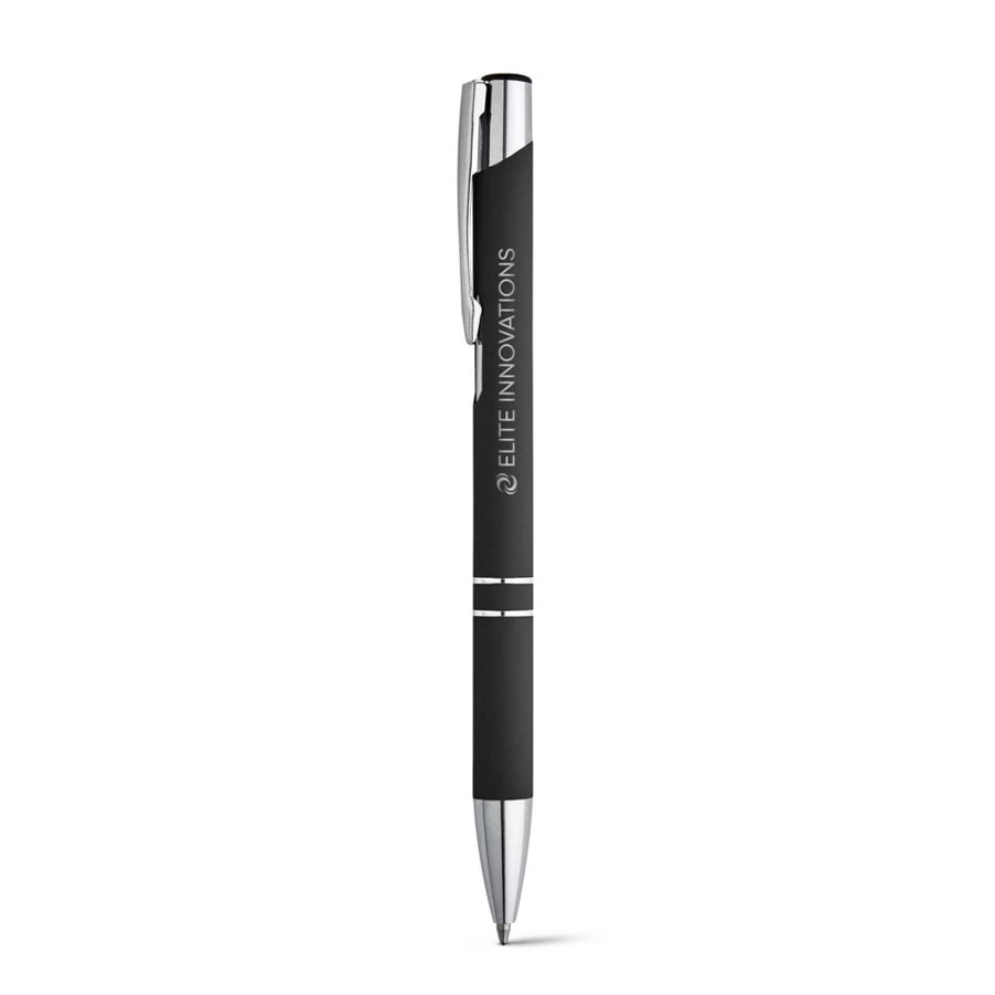 Aluminiowy długopis z kolorowym korpusem, o gumowym wykończeniu. Dostępny w szerokiej gamie kolorów. Tusz czarny. ø10 x 137 mm