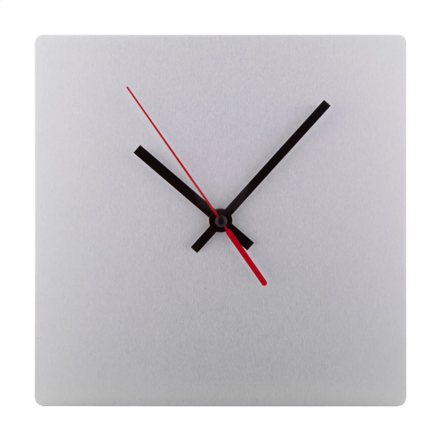 Personalizowany zegar ścienny ze szczotkowanego aluminium z grafiką na tarczy. Zasilany 1 baterią AA (brak w zestawie). Cena zawiera nadruk UV LED. Min. ilość: 25szt.
