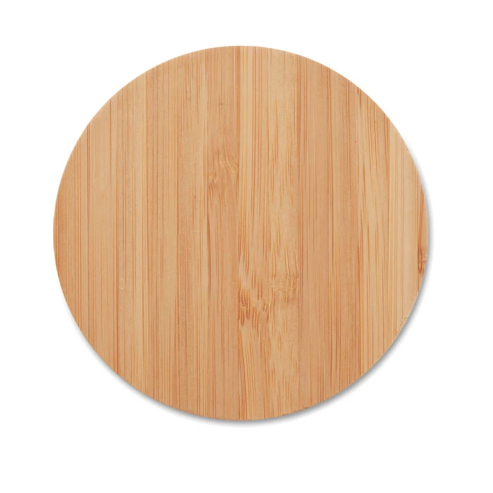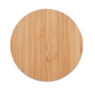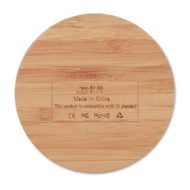 Okrągła ładowarka bezprzewodowa z bambusa. Aby naładować podłącz urządzenie do komputera i połóż telefon na powierzchni. Podczas ładowania świeci się niebieska lampka. Wyjście: DC5V/1A (5W). Bambus jest produktem naturalnym, dlatego mogą wy