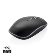 Bezprzewodowa mysz komputerowa, szybkie połączenie 125 Hz, przycisk do zmiany czułości działania, wbudowany akumulator litowo polimerowy o pojemności 300 mAh, ponowne ładowanie w 3 godziny, nadajnik USB w komplecie, grawer ukazuje podświetlaną powierzchnię, ślad węglowy produktu: 0,71 kg CO2