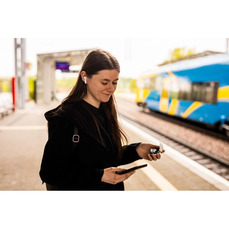 Bezprzewodowe słuchawki douszne 2x30 mAh z systemem aktywnej redukcji szumów (ANC) w etui ze stacją ładującą słuchawki 200 mAh, BT 5.0, funkcja odbierania połączeń i odtwarzania muzyki, ładowane przez USB, czas pracy: ok. 2h, etui z cyfrowym wyświetlaczem poziomu naładowania, zasięg do 10 m, kabel USB-C w komplecie