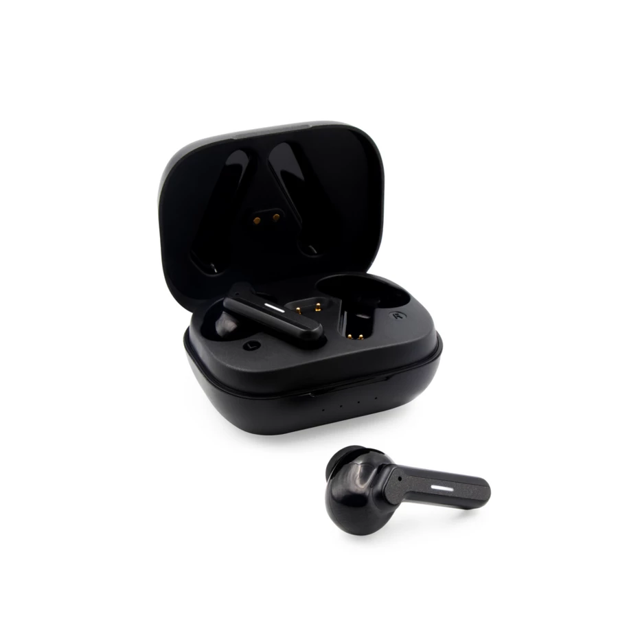 Słuchawki bezprzewodowe Exclusive Collection, BT 5.3, douszne, w etui ze stacją ładującą słuchawki 300 mAh, bateria słuchawek 2x 40 mAh, etui ładujące posiada 4 diody wskazujące poziom naładowania etui, grawer ukazuje podświetlaną powierzchnię, funkcja odbierania połączeń, czas pracy: ok. 7h (odtwarzanie muzyki), zasięg do 10 m, wejście USB-C, kabel USB-C do USB-C w komplecie, produkt wykonany z RABS