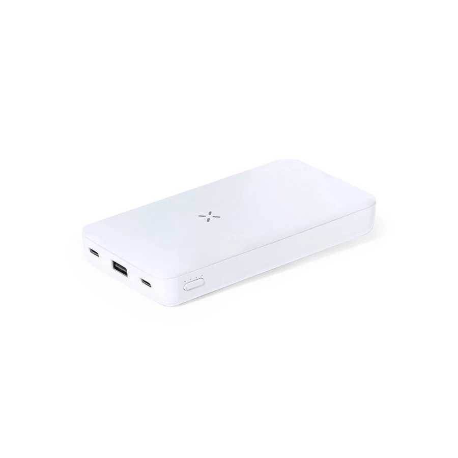 Bezprzewodowy power bank 5000 mAh, ładowarka bezprzewodowa 15W, działa z telefonami posiadającymi możliwość ładowania indukcyjnego, 4 diody wskazujące poziom naładowania, 2 cewki ładowania bezprzewodowego (15W, 2,5W), 2x wejście/wyjście USB typu C 5-12V/3-1.5A, wyjście USB 5-12V/3-1.5A, stojak na telefon