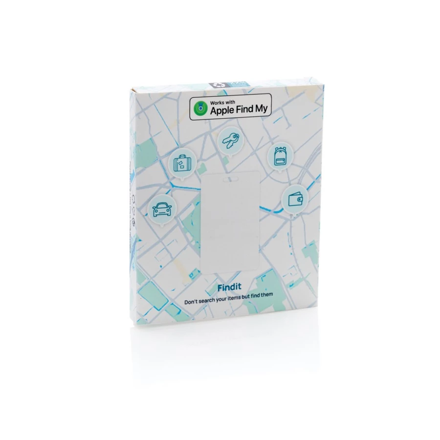 Bezprzewodowy wykrywacz kluczy, lokalizator, wykonany z ABS pochodzącego z recyklingu RCS, ma mniejszy wpływ na środowisko, ponieważ 40% jego całkowitej masy składa się z materiałów pochodzących z recyklingu, certyfikat RCS zapewnia w pełni certyfikowany łańcuch dostaw materiałów pochodzących z recyklingu, karta zapakowana w opakowanie upominkowe FSC® mix
