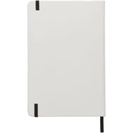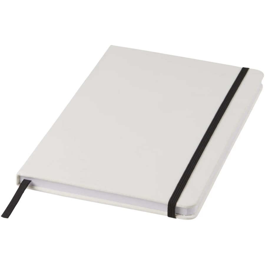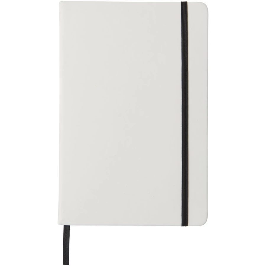 Notatnik A5 z zamknięciem na kolorową gumkę i tasiemką. 80 kartek w linie (gramatura 60 g/m²). Na okładce można wykonać zdobienie drukiem cyfrowym.