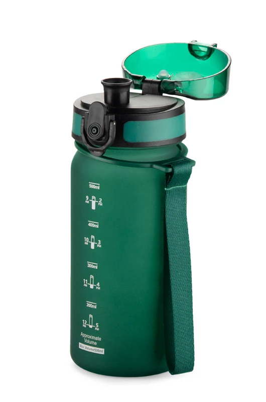 MOTIVA mini to kompaktowa butelka z miarką i blokowanym ustnikiem, idealna do codziennego użytku – w biurze, w podróży czy na eventach. Jej poręczna pojemność (500 ml) sprawia, że łatwo zmieści się w torbie lub plecaku, a wygodny pasek umożliwia komfortowe noszenie. Dzięki nowoczesnemu wyglądowi i praktycznym funkcjom doskonale sprawdzi się jako gadżet reklamowy – zwłaszcza w akcjach prozdrowotnych lub zestawach promocyjnych.
