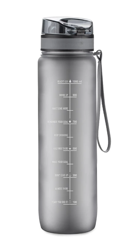 MOTIVA to praktyczna butelka z miarką i blokowanym ustnikiem, idealna do codziennego użytku w biurze, na eventach czy podczas aktywności fizycznych. Jej duża pojemność (1000 ml), wygodny pasek do noszenia i nowoczesny wygląd sprawiają, że świetnie sprawdza się jako nośnik marki – szczególnie w zestawach promocyjnych lub akcjach prozdrowotnych.