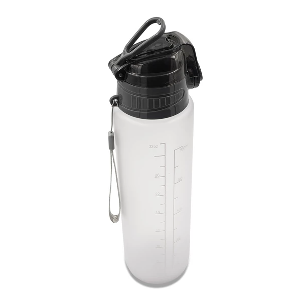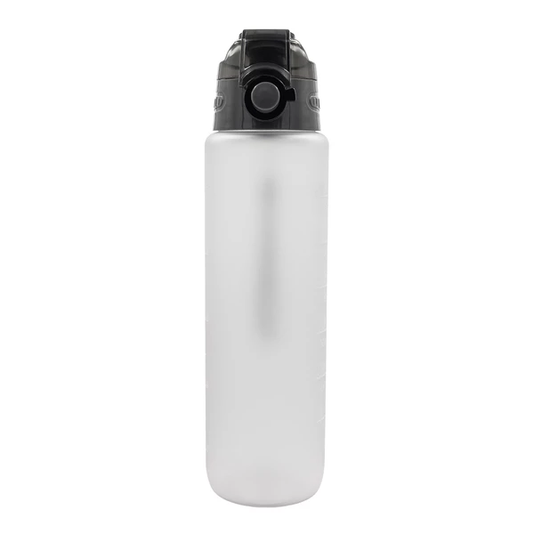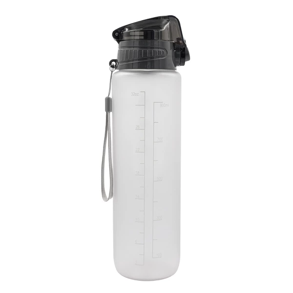 Bidon z tritanu, motywujący do nawadniania się podczas treningów i na co dzień. Podziałka zawiera hasła zachęcające do regularnego picia wody. Nakrętka posiada blokadę i uchwyt.
