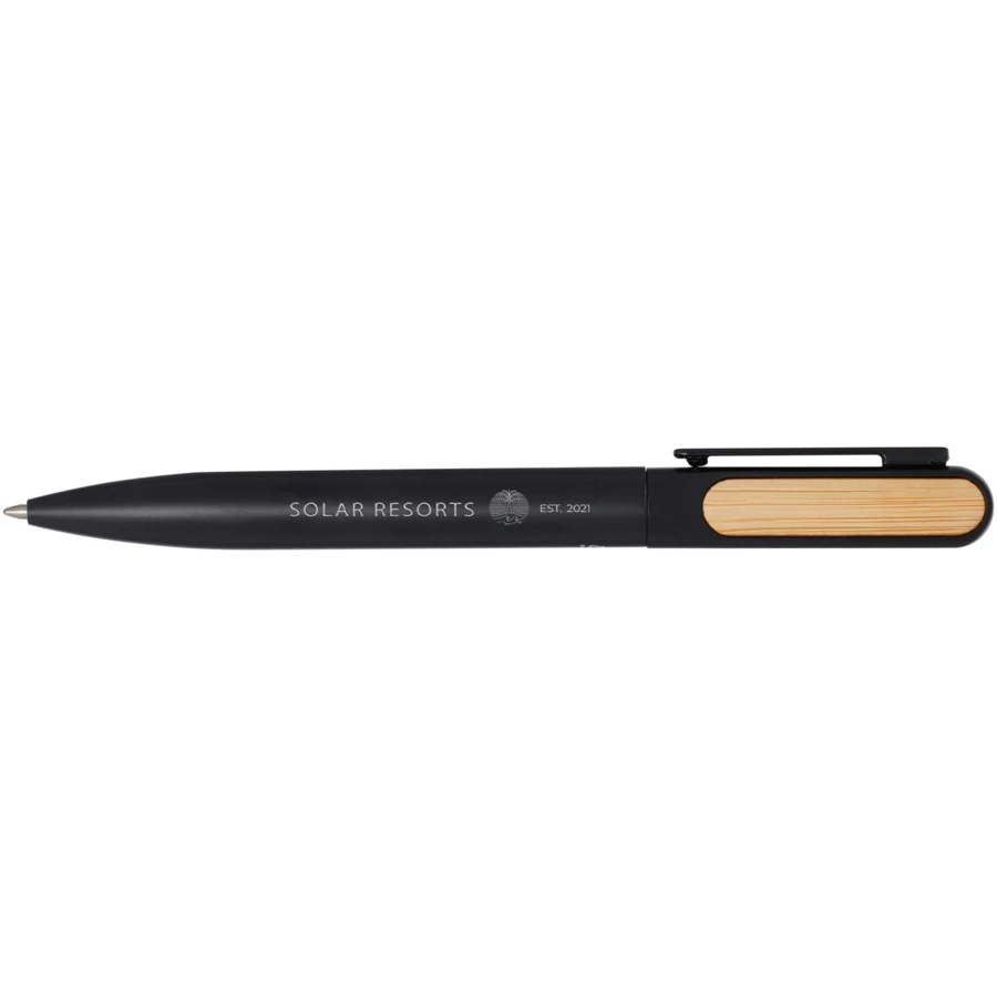 Blanca długopis o górnej części korpusu wykonanej z tworzyw sztucznych pochodzących z recyklingu pokryty kolorową powłoką natryskową z bambusowymi akcesoriami po obu stronach. Dolna część korpusu wykonana jest z aluminium pochodzącego z recyklingu, pokrytego kolorową powłoką natryskową. Kolor tuszu: Niebieski. Żywotność: 400 metrów. Rozmiar stalówki: 1,0 mm.