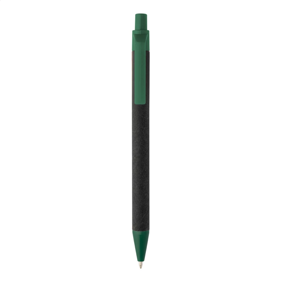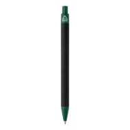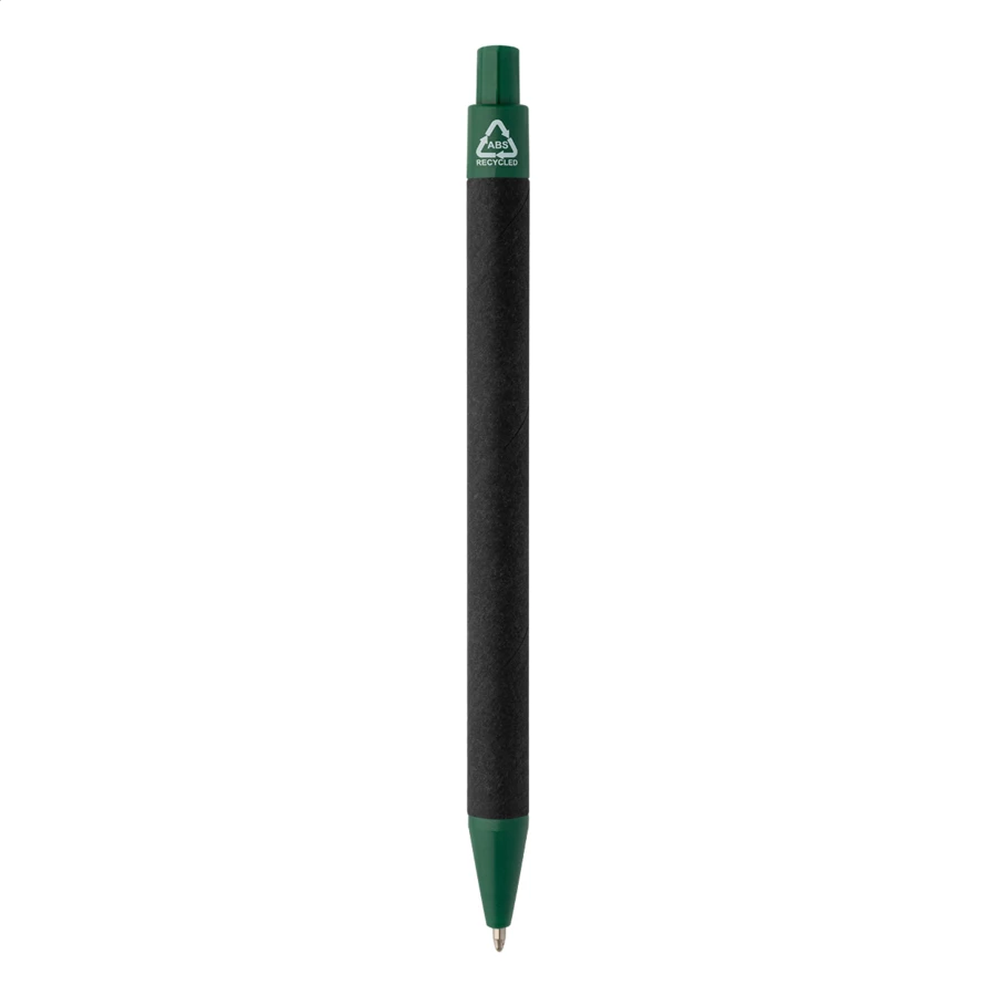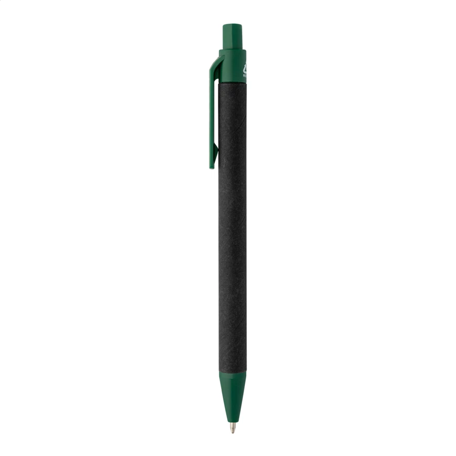 Długopis z papieru z recyklingu, z czarnym korpusem i elementami z recyklingowanego ABS. Z niebieskim wkładem.