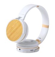 Bezprzewodowe słuchawki z bambusową dekoracją i wbudowanym akumulatorem. Z funkcją głośnomówiącą i odtwarzaniem plików MP3 z micro SD. W zestawie kable audio Jack 3,5 mm i ładowarka USB.