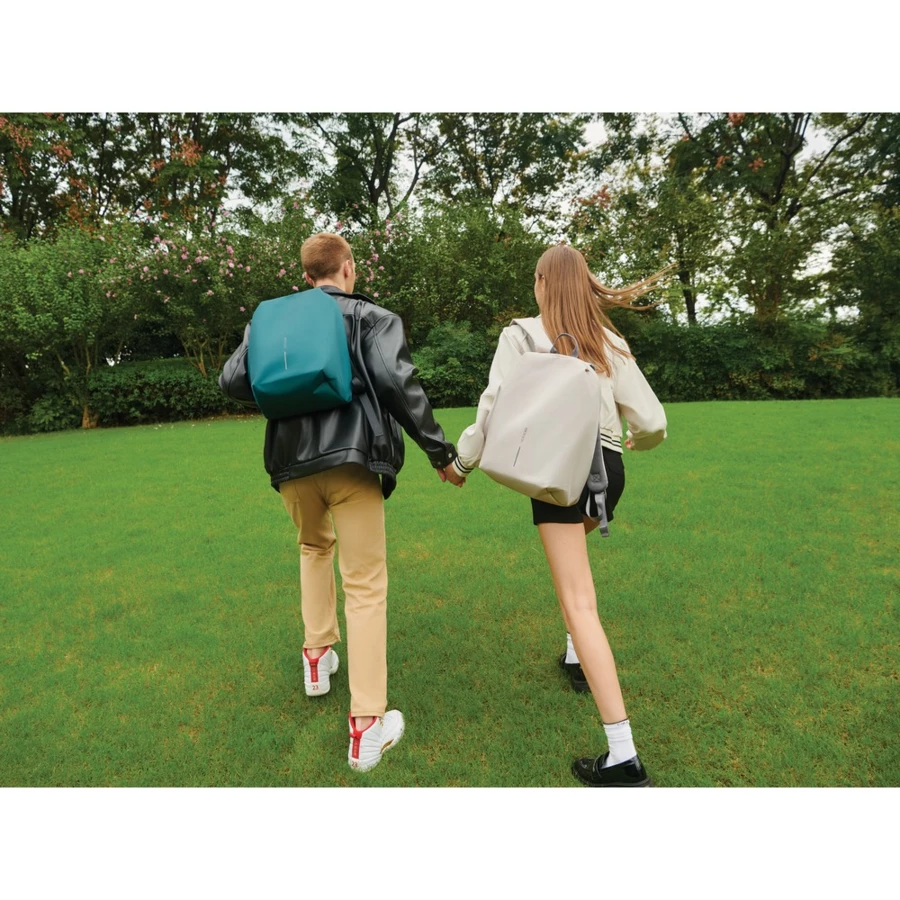 Plecak chroniący przed kieszonkowcami Bobby Soft, wodoodporny materiał, wykonany z RPET, ukryte zamki i kieszenie, kieszenie z ochroną RFID, przestronna przegroda główna z kieszeniami wewnątrz i miękką przegrodą na laptopa do 15,6", zintegrowany port USB do ładowania telefonów (power-bank nie jest dołączony), rozszerzalna górna część plecaka, ślad węglowy produktu: 5,1 kg CO2