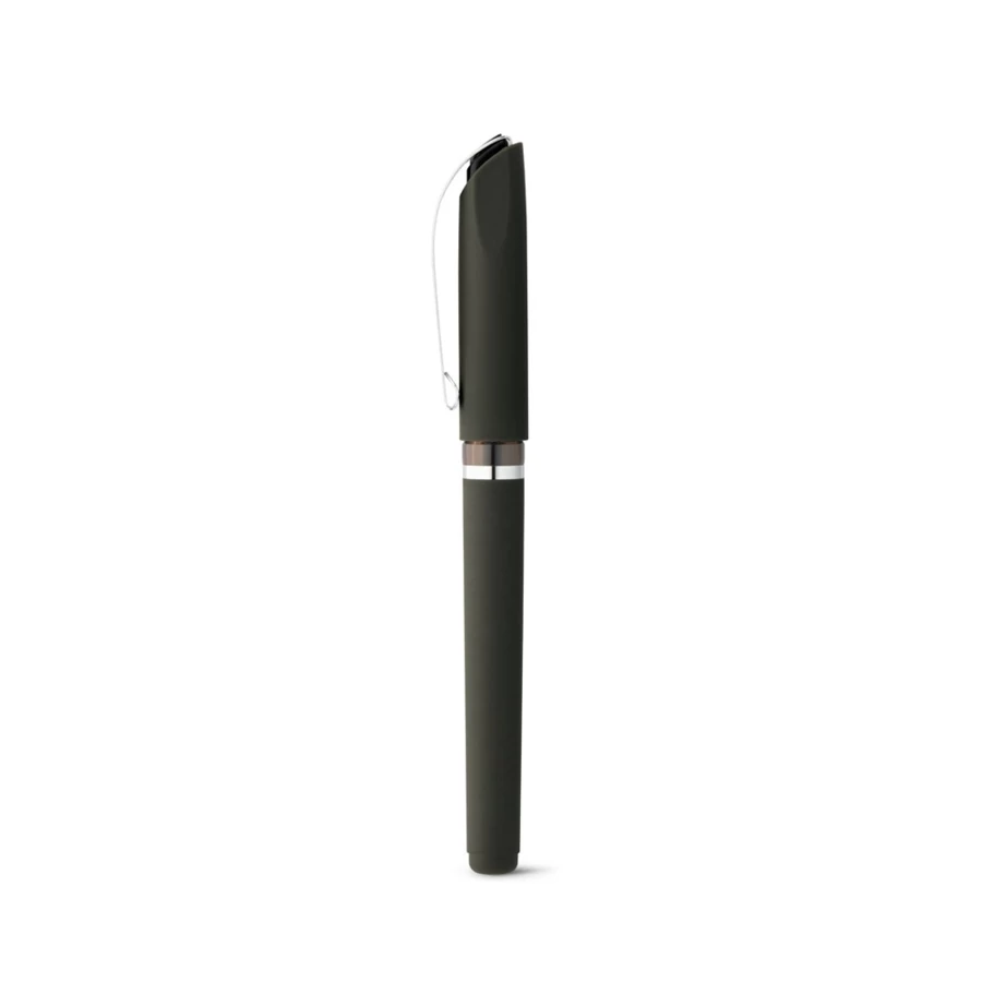 Długopis wykonany z ABS o gumowym wykończeniu, z antypoślizgowym uchwytem i metalowym klipsem. W zestawie czarny tusz z żelowym wkładem. ø12 x 140 mm