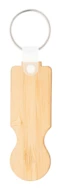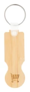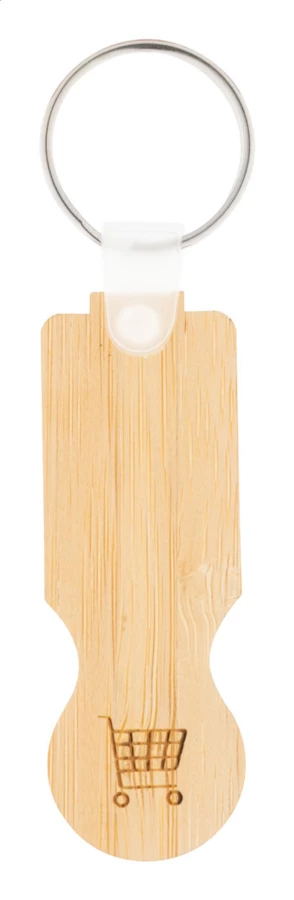 Brelok wykonany ze sklejki bambusowej z żetonem do wózka sklepowego.