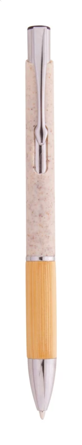 Ekologiczny plastikowy długopis ze słomy pszenicznej z bambusowym uchwytem i metalowymi elementami. Z niebieskim wkładem.