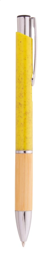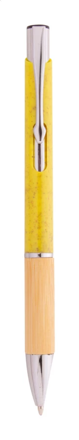 Ekologiczny plastikowy długopis ze słomy pszenicznej z bambusowym uchwytem i metalowymi elementami. Z niebieskim wkładem.