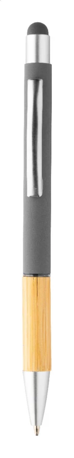 Aluminiowy długopis z końcówką do ekranów dotykowych, z bambusowym uchwytem i matowym wykończeniem. Z niebieskim wkładem.
