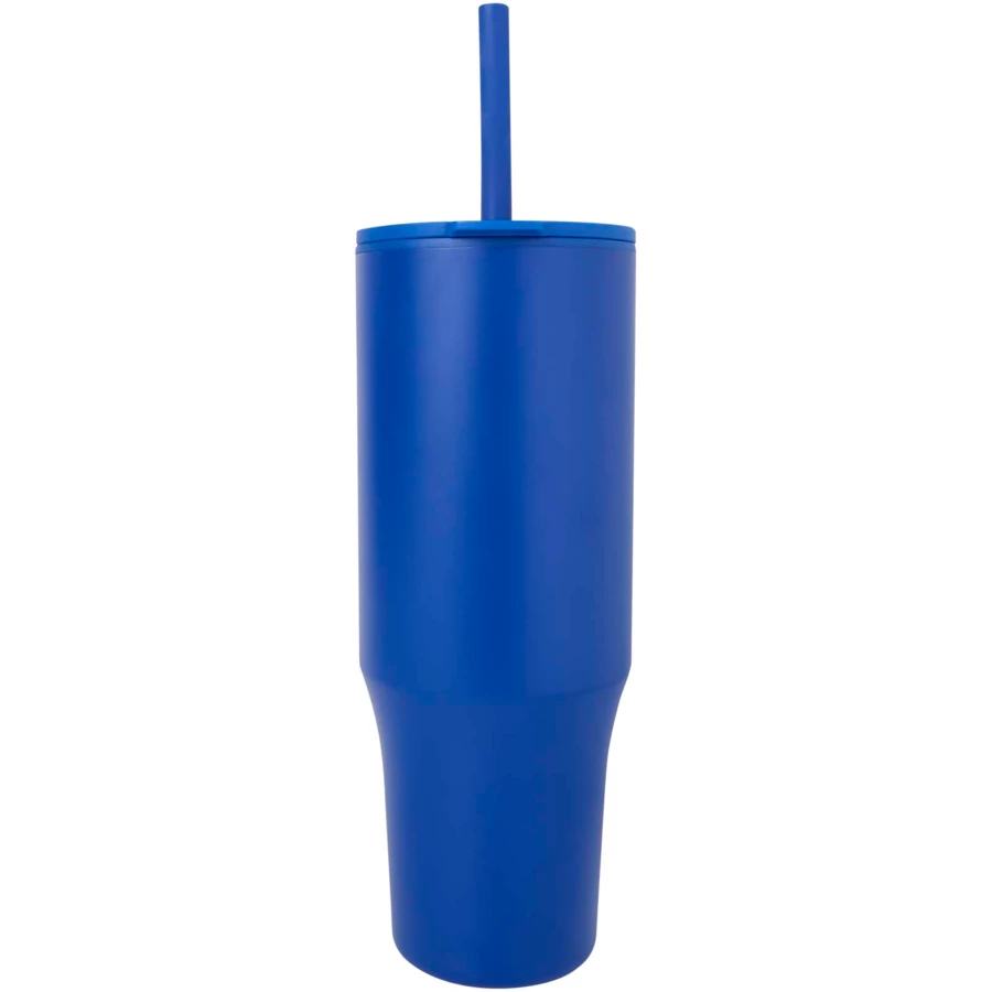 Kubek z trwałą ścianką zewnętrzną wykonaną ze stali nierdzewnej z recyklingu, z certyfikatem RCS i z wewnętrzną ścianką z tworzywa. Zawiera silikonową słomkę przeznaczoną do kontaktu z żywnością, która zapobiega rozchlapywaniu, oraz nakładaną pokrywkę, co zapewnia przyjemne wrażenia podczas picia. Ten kubek nadaje się również do gorących napojów, jednak nie zaleca się picia ich przez słomkę. Aby napój ostygł przed spożyciem, należy zdjąć pokrywkę. Pojemność: 900 ml. Tylko do mycia ręcznego.
