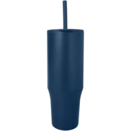 Kubek z trwałą ścianką zewnętrzną wykonaną ze stali nierdzewnej z recyklingu, z certyfikatem RCS i z wewnętrzną ścianką z tworzywa. Zawiera silikonową słomkę przeznaczoną do kontaktu z żywnością, która zapobiega rozchlapywaniu, oraz nakładaną pokrywkę, co zapewnia przyjemne wrażenia podczas picia. Ten kubek nadaje się również do gorących napojów, jednak nie zaleca się picia ich przez słomkę. Aby napój ostygł przed spożyciem, należy zdjąć pokrywkę. Pojemność: 900 ml. Tylko do mycia ręcznego.