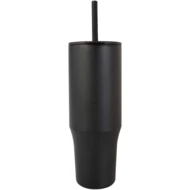 Kubek z trwałą ścianką zewnętrzną wykonaną ze stali nierdzewnej z recyklingu, z certyfikatem RCS i z wewnętrzną ścianką z tworzywa. Zawiera silikonową słomkę przeznaczoną do kontaktu z żywnością, która zapobiega rozchlapywaniu, oraz nakładaną pokrywkę, co zapewnia przyjemne wrażenia podczas picia. Ten kubek nadaje się również do gorących napojów, jednak nie zaleca się picia ich przez słomkę. Aby napój ostygł przed spożyciem, należy zdjąć pokrywkę. Pojemność: 900 ml. Tylko do mycia ręcznego.