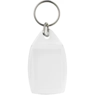Breloczek P5 z metalowym pękiem na klucze. Wymiary wkładu do druku: 3,5 cm x 2,4 cm.
