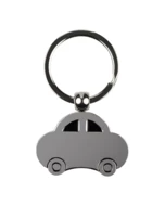 Brelok do kluczy z zawieszką w kształcie samochodu, wykonany z chromowanego metalu. Brelok dwustronny.