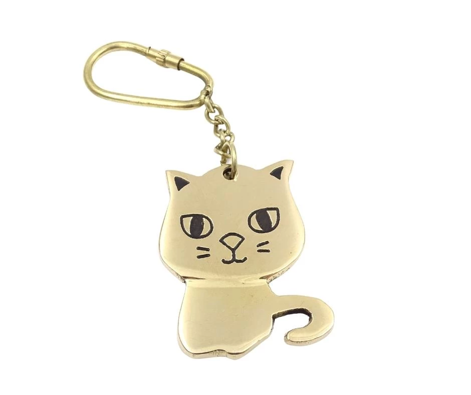 Mosiężny brelok z karabinczykiem w kształcie kotka. Świetny upominek dla miłosnika kotów.
