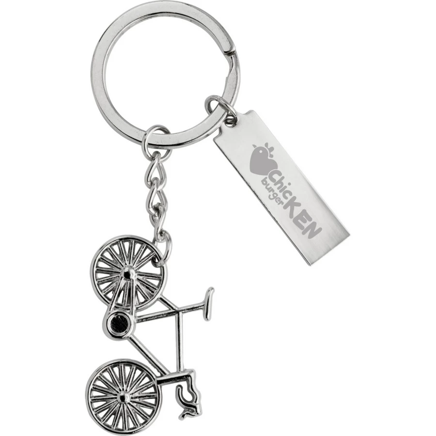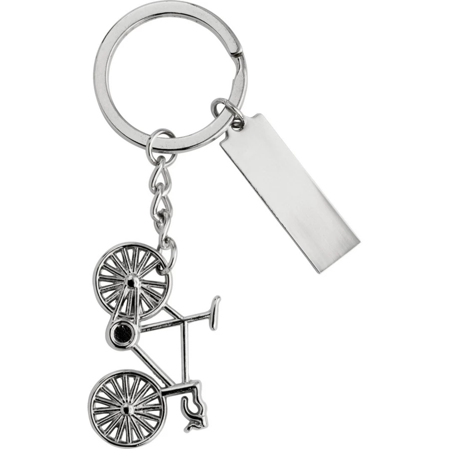 Brelok do kluczy "rower" z prostokątną plakietką na personalizację, w pudełku