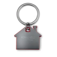 Brelok na klucze w kształcie domku, wykonany ze stali nierdzewnej oraz ABS.