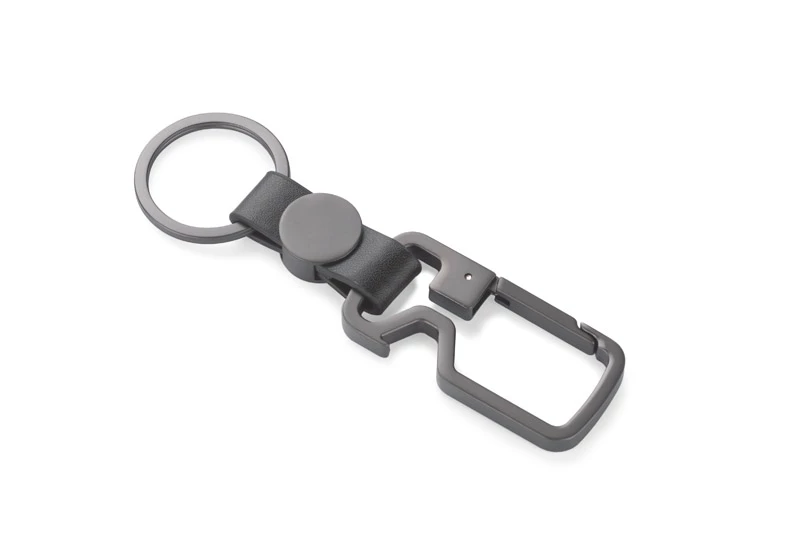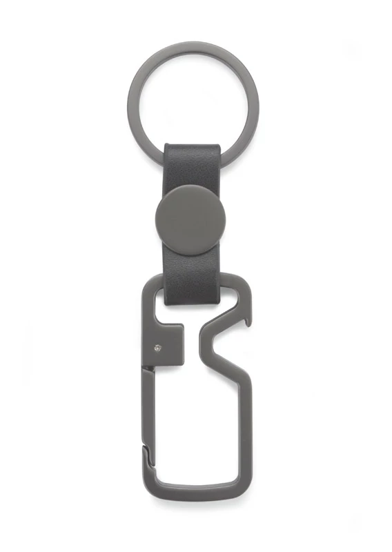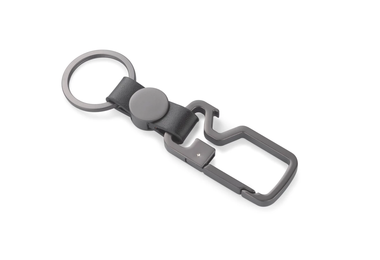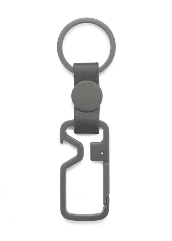 HILLE to brelok oryginalny i nietuzinkowy. Połączenie metalu w kolorze grafitowym z elementem z materiału skóropodobnego (PU) nadają niezwykle elegancki wygląd.Poza funkcją breloka posiada też funkcję otwieracza do kapsli i karabińczyka, który w szybki i łatwy sposób umożliwia przypięcie breloka na przykład do szlufki w spodniach. W ten sposób pęk kluczy jest zawsze w zasięgu ręki. Zapakowany w brązową papierową kopertę.