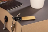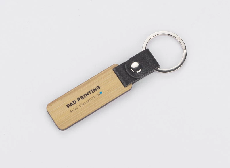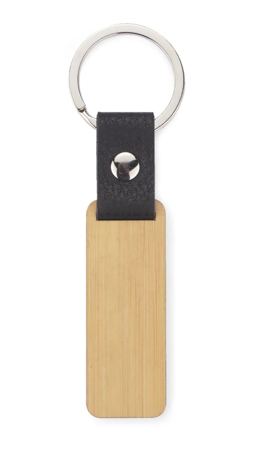 Brelok HOLZ to elegancki brelok wykonany z bambusa. Metalowa obręcz zawieszona jest na skórzanym pasku.